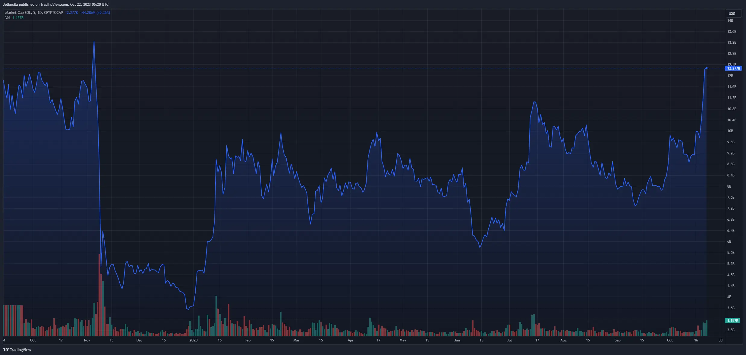 SOL market cap currently at $12.5 billion. Chart: TradingView.com