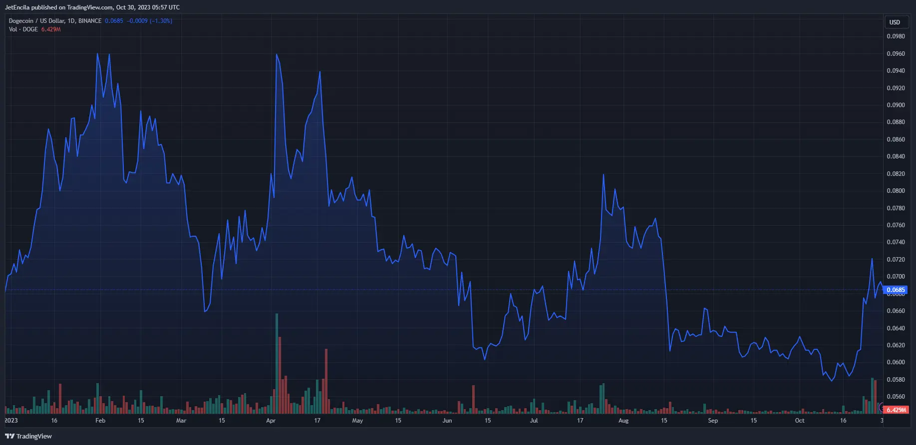 Dogecoin (DOGE) is currently trading at $0.0685. Chart: TradingView.com
