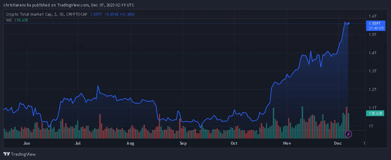 As of today, the market cap of cryptocurrencies stood at $1.55 trillion. Chart: TradingView.com