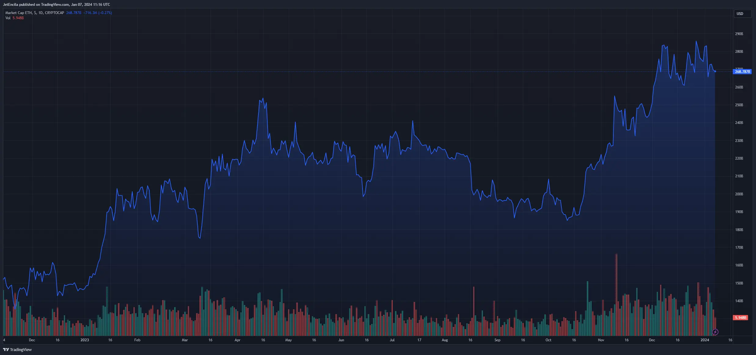 ETH market cap currently at $268 billion. Chart: TradingView.com