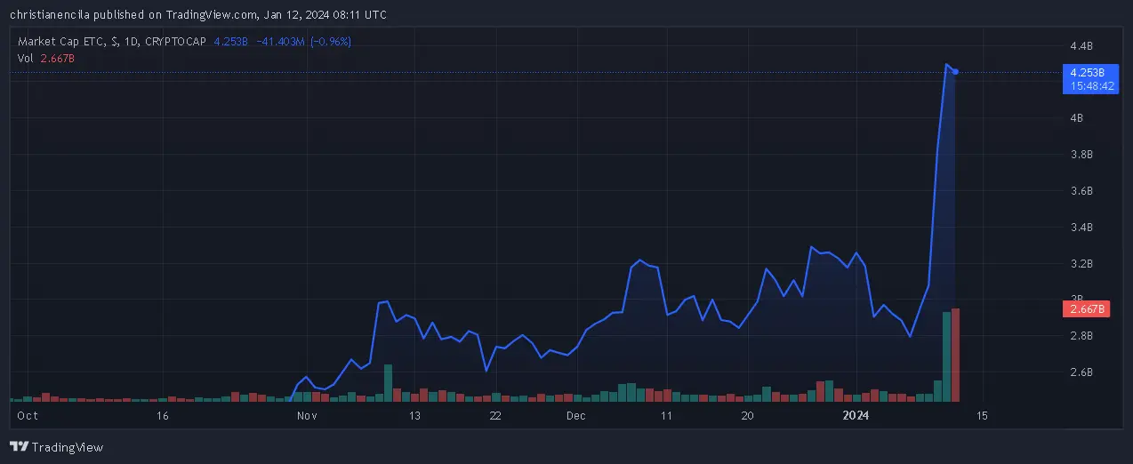 ETC market cap currently at $4.248 billion. Chart: TradingView.com