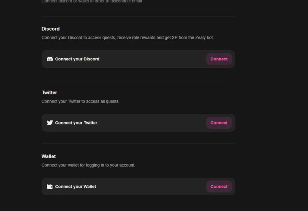 Within “Account settings,” ensure all relevant accounts are interconnected with your Zealy profile. Crucially, don’t overlook linking your Web3 wallet!