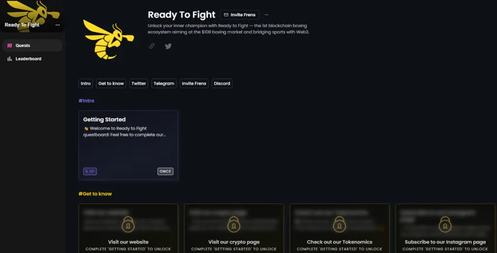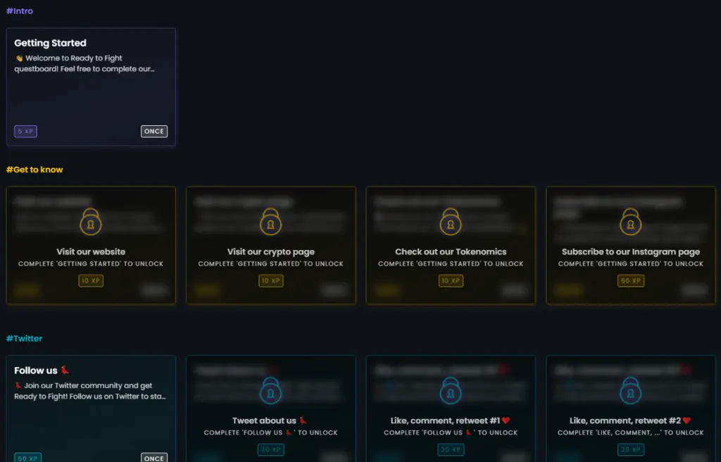 Embarking on the RTF Community Adventure is a seamless experience, guiding you through a series of tasks within the Ready To Fight application and Zealy to collect your RTF tokens with ease. You’re a mere two steps away from reaching your target. These clear, sequential guidelines will steer you through a variety of activities to secure your portion of RTF tokens!