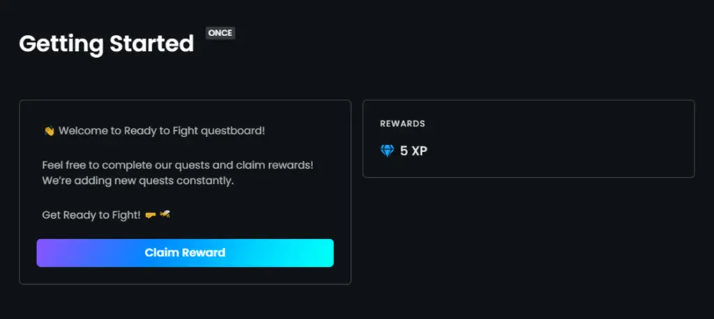 Now, circle back to the Ready To Fight homepage on Zealy. Here lies your portal to view and embark on all open tasks.