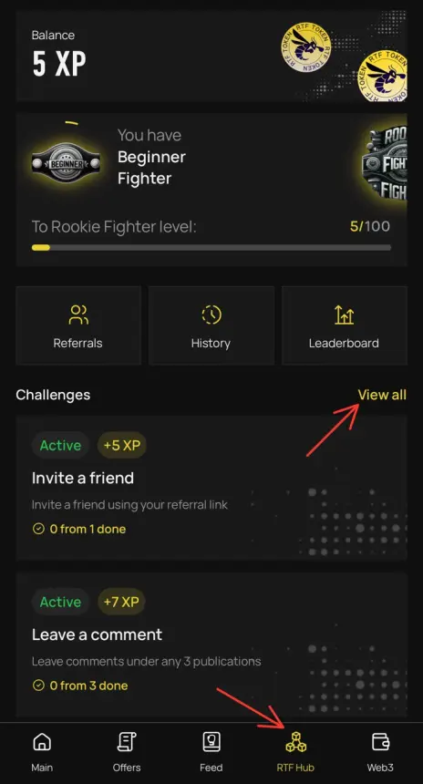 Once your Web3 wallet is operational, head over to the RTF Hub to start tackling tasks and amassing points redeemable for rewards!