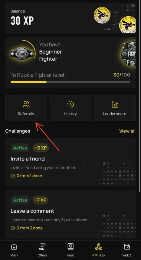 Engage in the RTF Initiative’s referral scheme to amplify your experience points (XP) gains. By introducing first-tier referrals, you’ll secure a substantial 16% XP boost, while second-tier referrals will net you an 8% increase.