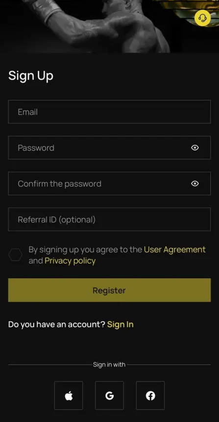 2.Opt for one of three effortless registration options using your pre-existing Google, Facebook, or Apple ID credentials. This feature is located at the screen’s base, just beneath “Sign in with.”