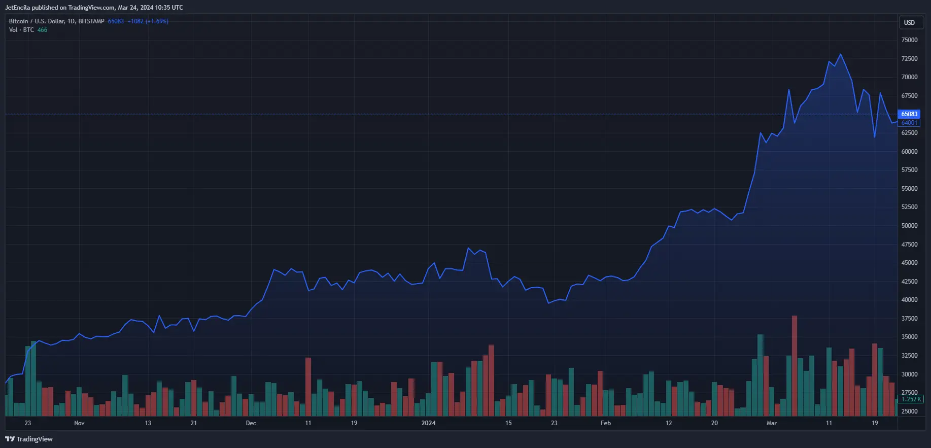 Bitcoin is now trading at $65.083. Chart: TradingView