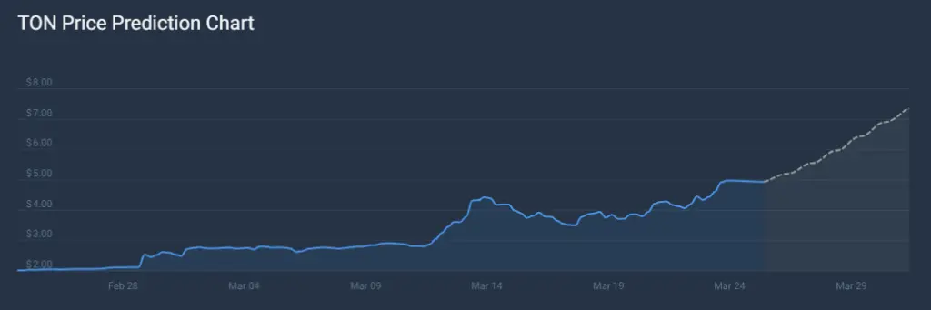 Adding to the optimism, crypto prediction platform CoinCodex forecasts a price of $6.45 for TON by March 29th, translating to a potential 30% increase within the next five days. Toncoin’s medium-term outlook also appears strong, with a 120% gain observed in the last quarter.