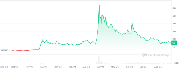 WLD token price soared in value after Sam Altman’s OpenAI reported to complete a deal worth $80 Billion. This pumped up the optimism in the WorldCoin native token that rose more than 32% last week. Currently WLD token is trading at $1.53 following a slight 6% up today