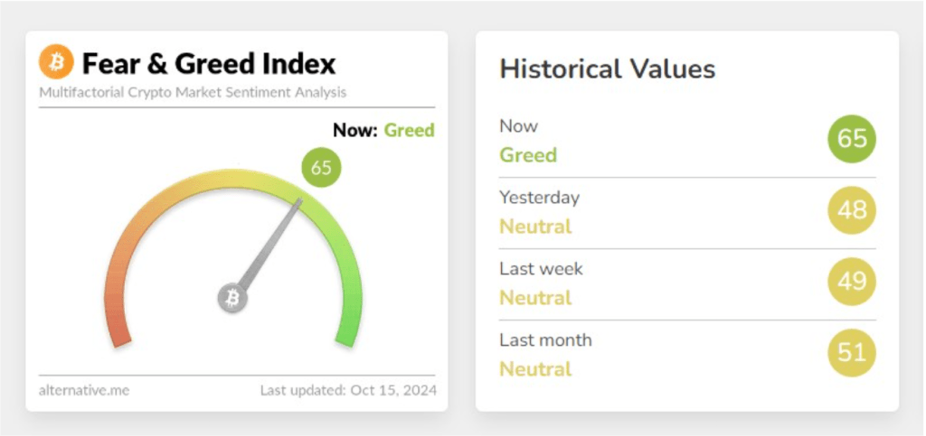 The crypto market now remains bullish, as Bitcoin holds above $66,000 – the fear and greed index sits at 65, while the market capitalization of the meme coin is at $2.39 trillion.