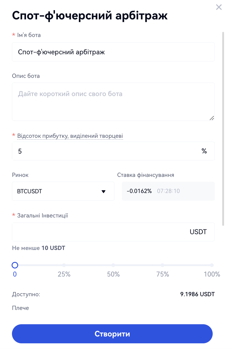 По-друге, введіть загальну суму інвестицій. Вам потрібно інвестувати лише USDT для здійснення спот-ф'ючерсного арбітражу, не купуючи спот.