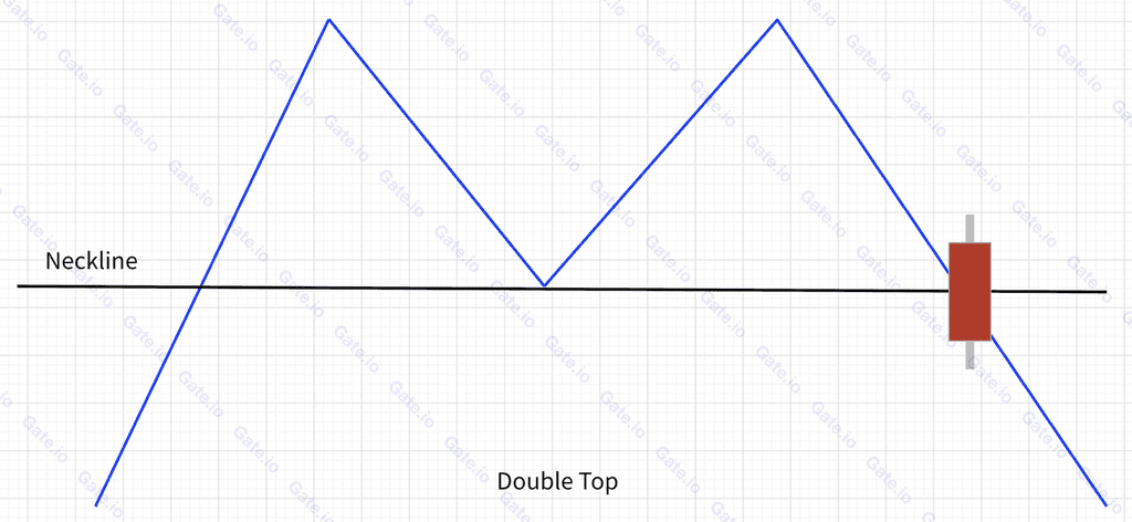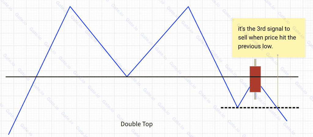 Подвійні вершини вказують на те, що ціна, можливо, досягла свого зеніту, сигналізуючи про потенційний зсув у бік ведмежого ринку. Як тільки ця модель підтверджується, з'являються три важливі можливості для продажу, які можна використати для максимізації прибутку. Нижче ми окреслимо позиції цих трьох точок продажу.