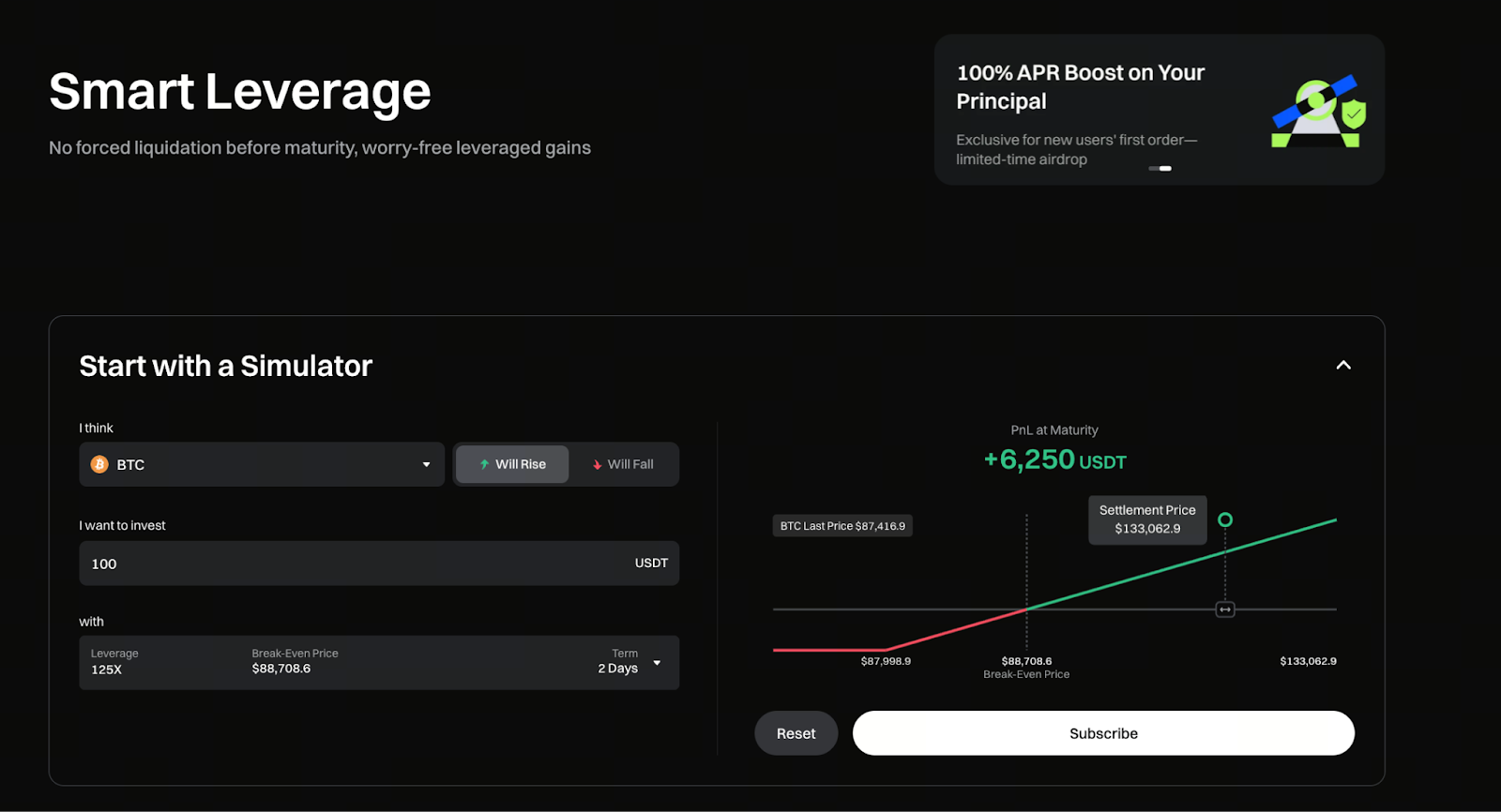 Під час події користувачі, які вперше підписуються на Gate Smart Leverage, отримують грошову субсидію зі ставкою 100% APR (у річному обчисленні) на суму підписки, незалежно від результату ордера.