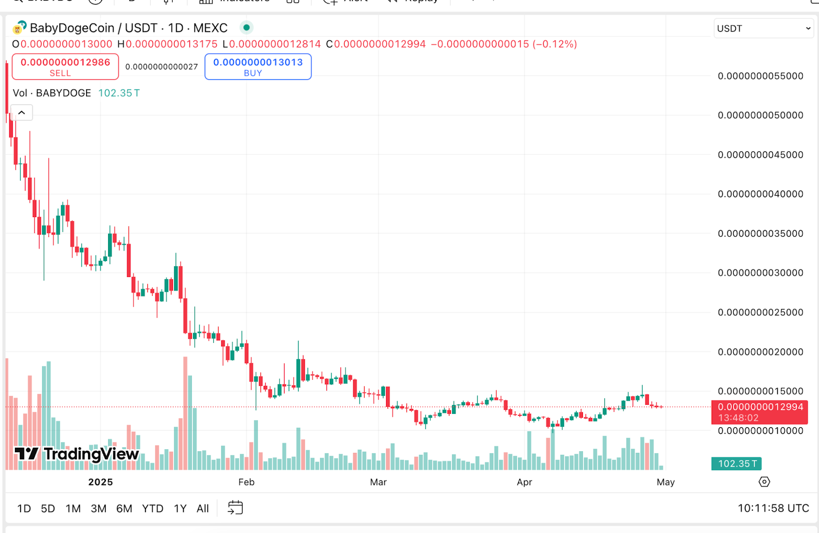 ! Діаграма 1- Жива ціна BabyDogeCoin/USDT, опублікована на TradingView, 30 квітня 2025 року.