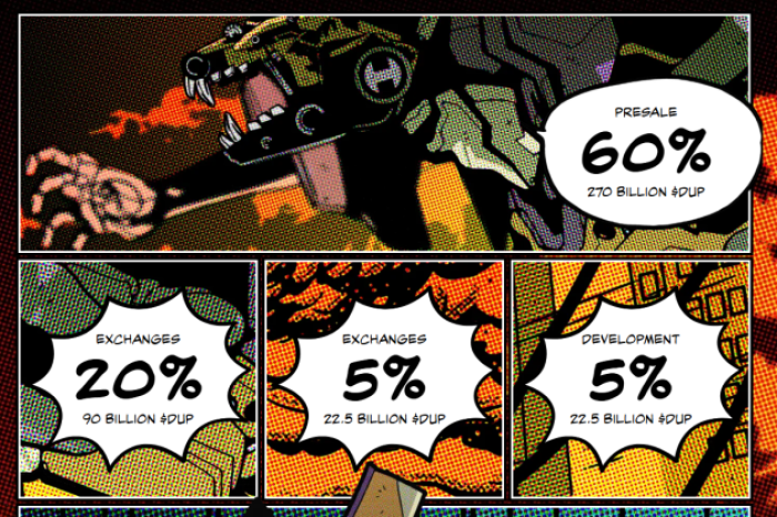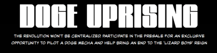 Інспірований мехою варіант класичного мемкойна Шиба Іну, Doge Uprising ($DUP) пропонує просту, агресивну маркетингову стратегію, спрямовану виключно на привернення уваги та побудову інтересу. Doge Uprising дійсно планує запустити колекцію NFT, але великий акцент робиться на попередньому продажу.