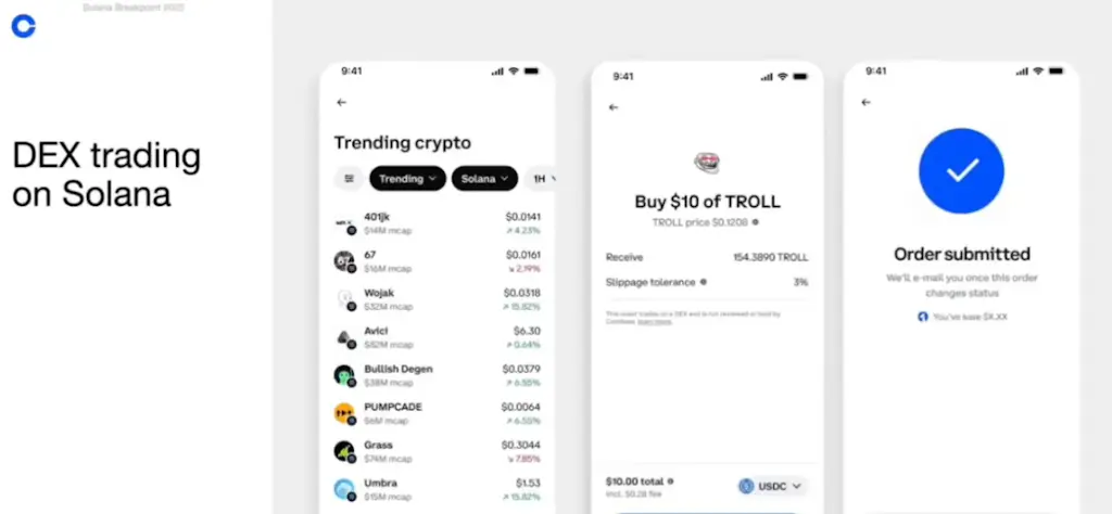 Джерело: Blockworks Оригінальна назва: Coinbase інтегрує торгівлю Solana Оригінальне посилання: https://blockworks.co/news/coinbase-embeds-solana-trading