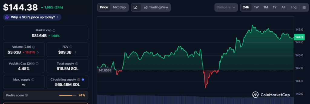 Solana наразі торгується в тісному діапазоні між $142 і $145 після сильного опору на рівні $150. Навіть із цим короткостроковим паузою технічні аналітики показують сильну підготовку до значного зростання. Останній прогноз ціни Solana на січень вказує на рух до $160 або $180 найближчим часом. Дослідницькі компанії вважають, що мережа формує висхідний тренд, який орієнтований на $260 до $320 до кінця року. Інституційний інтерес продовжує зростати, оскільки технологія тепер готова до глобального застосування у всіх сферах.
