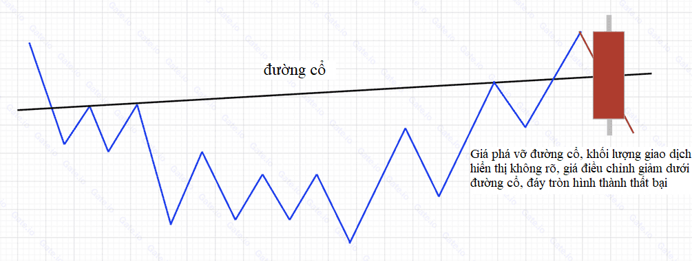 Nếu không có sự tăng khối lượng giao dịch khi phá vỡ đường cổ, rất có khả năng mô hình đáy tròn sẽ thất bại.