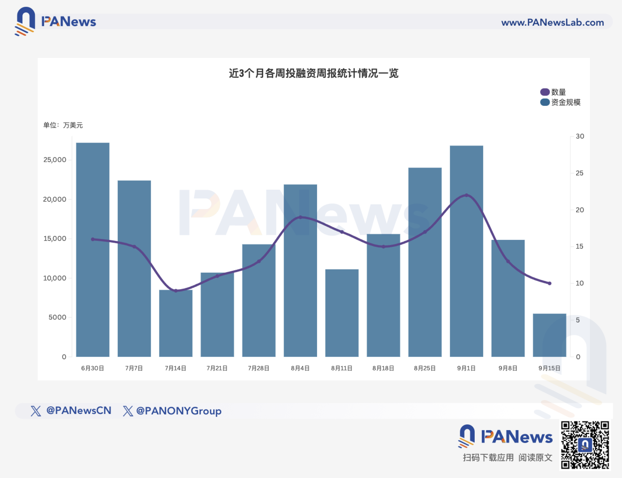 Theo thống kê chưa đầy đủ của PANews, trong tuần qua (9.8-9.14), toàn cầu có 10 sự kiện đầu tư và tài chính liên quan đến blockchain, tổng số vốn vượt qua 54.8 triệu USD; ngoài ra, tổng số vốn dự trữ tài sản tiền điện tử của các công ty niêm yết vượt quá 1.95 tỷ USD, tổng quan như sau: