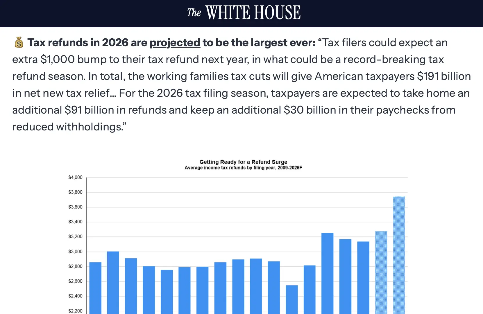 Tiêu đề gốc: Kích thích sắp đến? Nhà Trắng cho biết hoàn thuế năm 2026 sẽ đạt mức cao mới