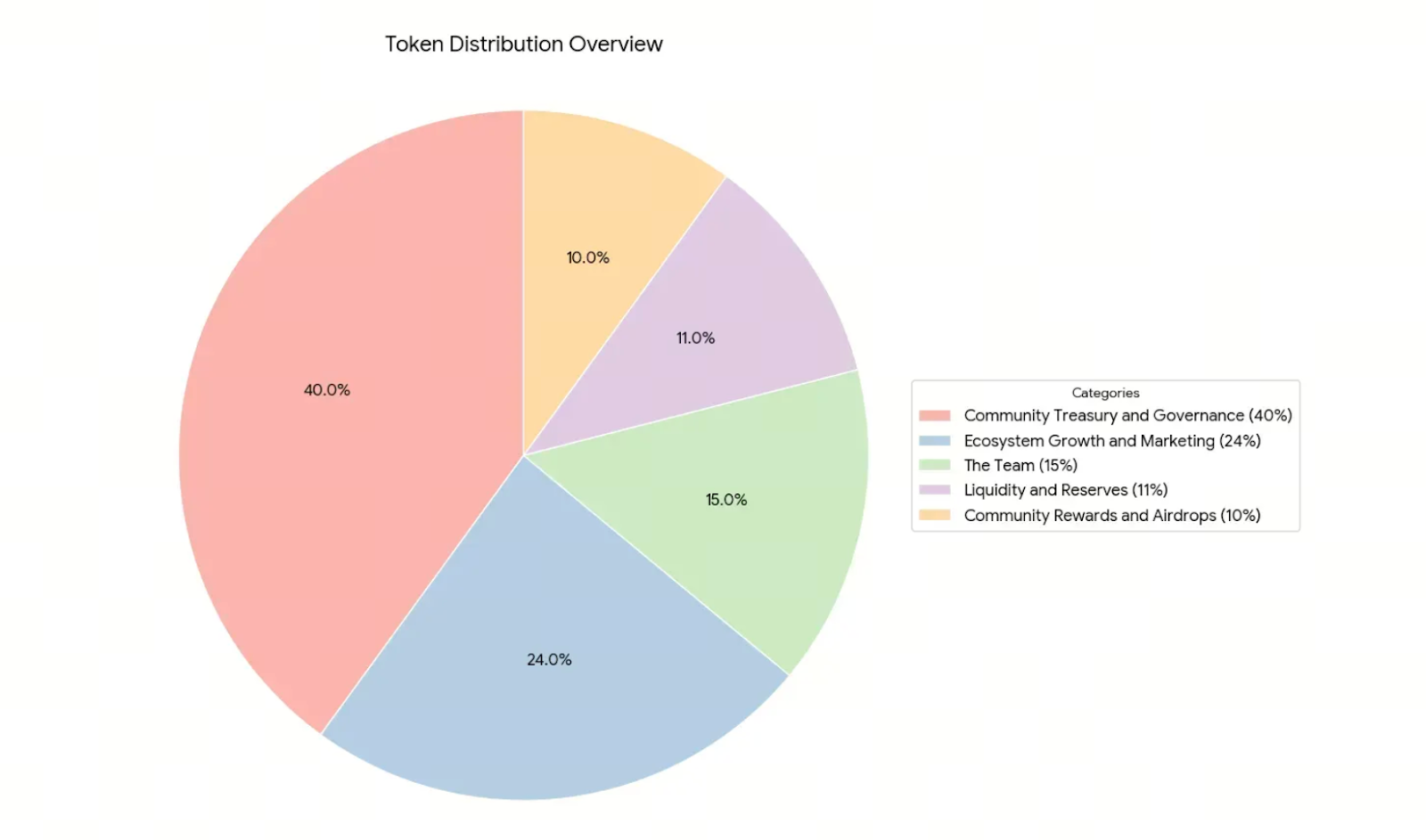 包含:初始流動性 1.5%(TGE 即時全數解鎖)、CEX/DEX 儲備金 9.5%,用於未來上架與合作。
