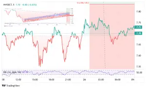 🧭 戰略解讀: NWST1100**:** 中線在6,060處已從阻力轉爲支撐。在此維持將開啓0.236斐波那契目標(6,353–6,400)。戰術(NWSBCT):5日下跌楔形現在已達到其頂點——經典的高概率解局設置。突破並收盤在7.70以上 → 測量移動目標爲7.95–8.05 (楔形高度加到突破點)。對於NWSBCT中類似的5日下跌楔形在極端廣度後的歷史結果:~70%向上解決。看跌延續信號:跌破並收盤在7.50以下 → 重新測試7.26–7.40區間(健康的第二腿較大的雙底)。在這些情況發生之前 → 純粹的頂點噪音,沒有優勢。