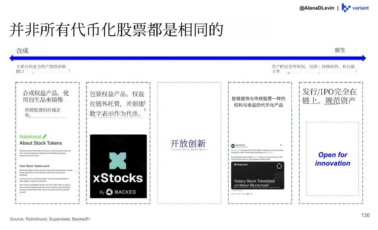 同樣地,我們也開始看到鏈上股權的實驗性探索。許多設計正在測試中,未來可能會形成一系列代幣化股權產品的多樣化光譜。