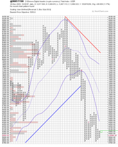 *以下,我們呈現一份標準化的每週報告與下週展望,基於智慧金融的理論Swingtum所準備。我們透過展示2100NEWS數位資產總指數(NWST1100),來衡量市場資本化的1100個重要加密資產的表現,從而判斷加密市場的廣度與方向。這張資訊豐富的圖表初看較為複雜,但它有效呈現關鍵價格資訊、決策層級、動能、交易量與市場廣度。監控市場情緒與廣度是偵測趨勢反轉或持續強勢的必要手段。