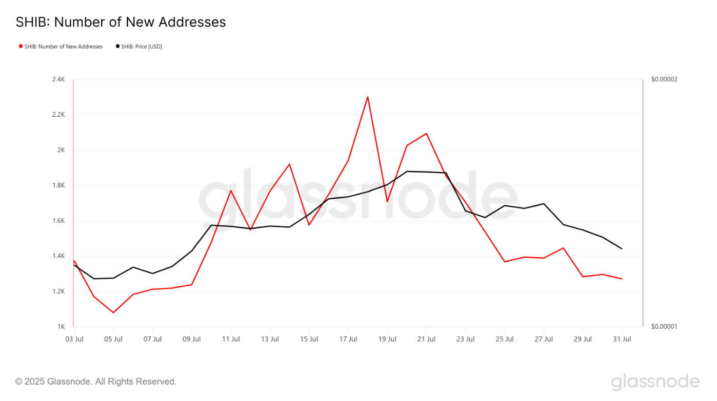 导致SHIB价格下杀的主要原因之一是与该代币互动的新钱包数量严重减少。在过去的10天里,新钱包地址数量减少了近40%——这表明新资金正在逐渐撤出加密市场。这一撤退反映了对SHIB增长潜力的信心明显减弱,尤其是在年初强劲上涨的情况下。