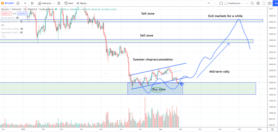 比特币下探至六个月低点,此前在近期高位后,加密分析师Income Sharks重新审视2022年子-$20K 买入区间图表。