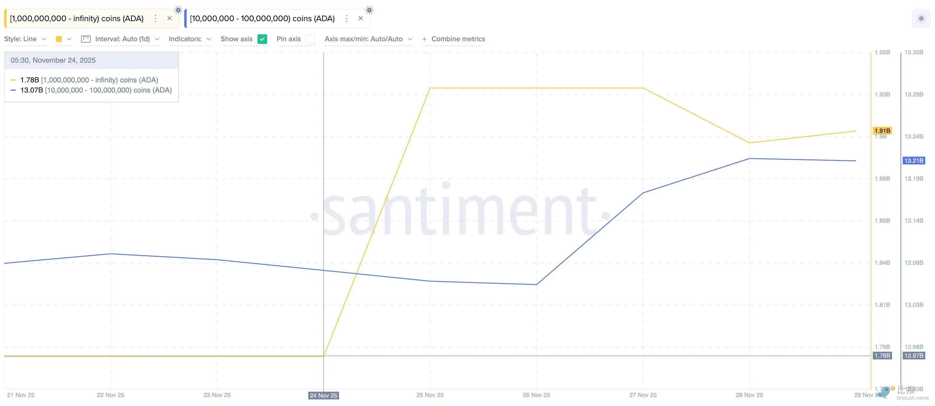 Cardano(ADA)在11月24日-12月4日的12天里,出现了极为罕见的“巨鲸轮动买入”:
