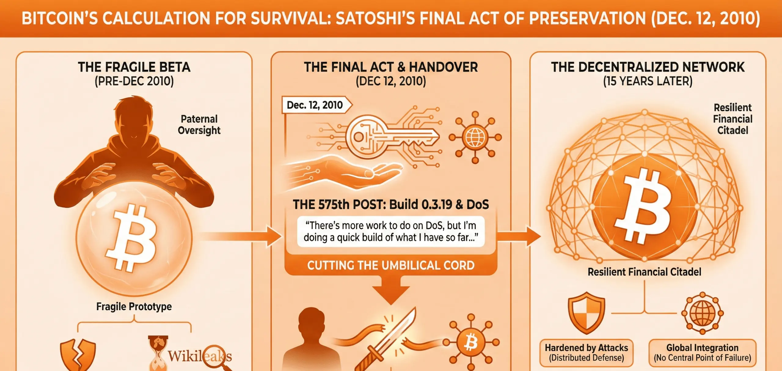 在那最后几周,发明者的想法很可能受到一种担忧的影响:这个微妙的实验或许正濒临被自身突如其来的重要性所压垮。即使在与Artforz和GPU矿工的紧张交锋中,中本聪也未将比特币视为不可摧毁的金融堡垒,而更像一个脆弱的“beta”原型——一个需要多年静默孕育的幼苗,其根须必须变得足够强壮才能抵御风暴。